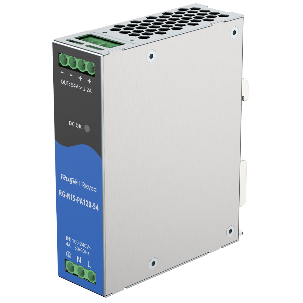 Fuente de alimentación Industrial Reyee - Salida DC 54 V 2,2A / 120 W - 2 salidas DC - Voltaje entrada 100 V ~ 240 V - 125 (Al) x 35 (An) x 100 (Fo) mm - Montaje en carril DIN