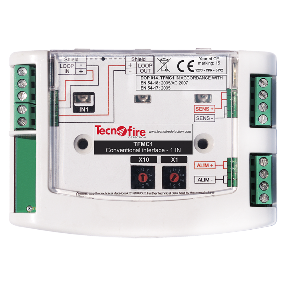 Módulo direccionable 1 zona convencional - Alimentación sensores convencionales optoaislada - 2 modalidades de conexión entrada: Alarma/Avería - 1 testigo de señalización estado - Fijación superficial o DIN (accesorio TFDIN)