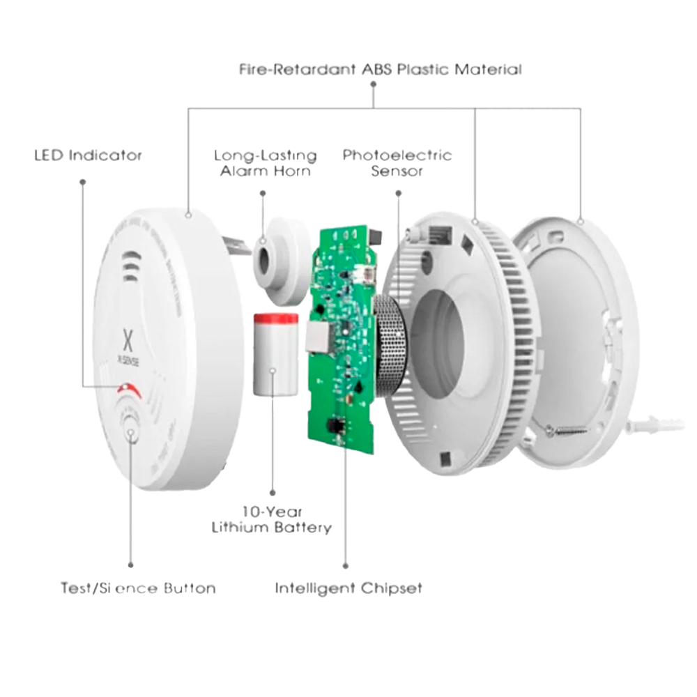 Pack de 5 detectores de humo autónomo X-Sense - Duración de la batería 10 años (no reemplazable) - Indicador luminoso de alarma - Alarma sonora 85 dB a 3m - Botón de Test - Certificado EN 14604
