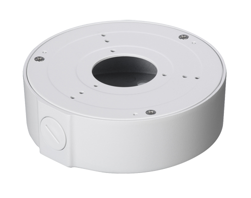 Permette di alloggiare l'alimentatore, il cablaggio e gli accessori al suo interno. Dispone di molteplici fori per diversi tipi di telecamere dome o bullet. Fissaggio a parete o tetto mediante 4 viti. La telecamera viene installata sul coperchio del supporto rimovibile. Permette passo cablaggio interno.