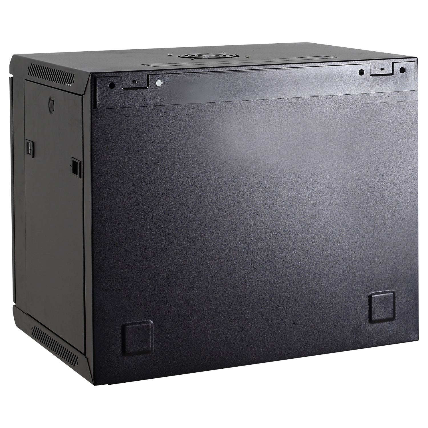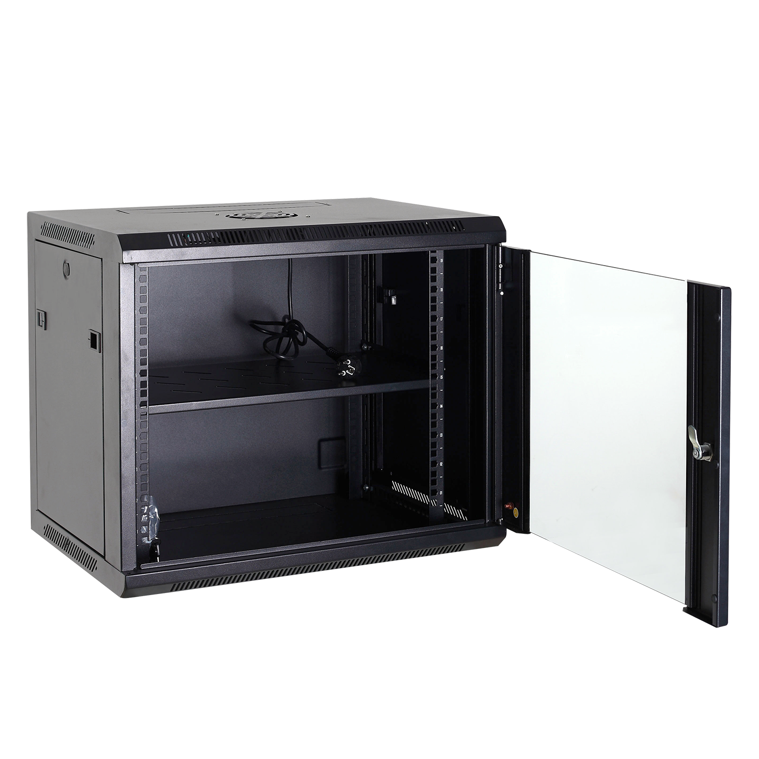 Armario rack de pared - Hasta 9U rack de 19" - Hasta 100 kg de carga - Con ventilación y pasacables - Incluye ventilador, bandeja y regleta de 6 tomas - Sin montar