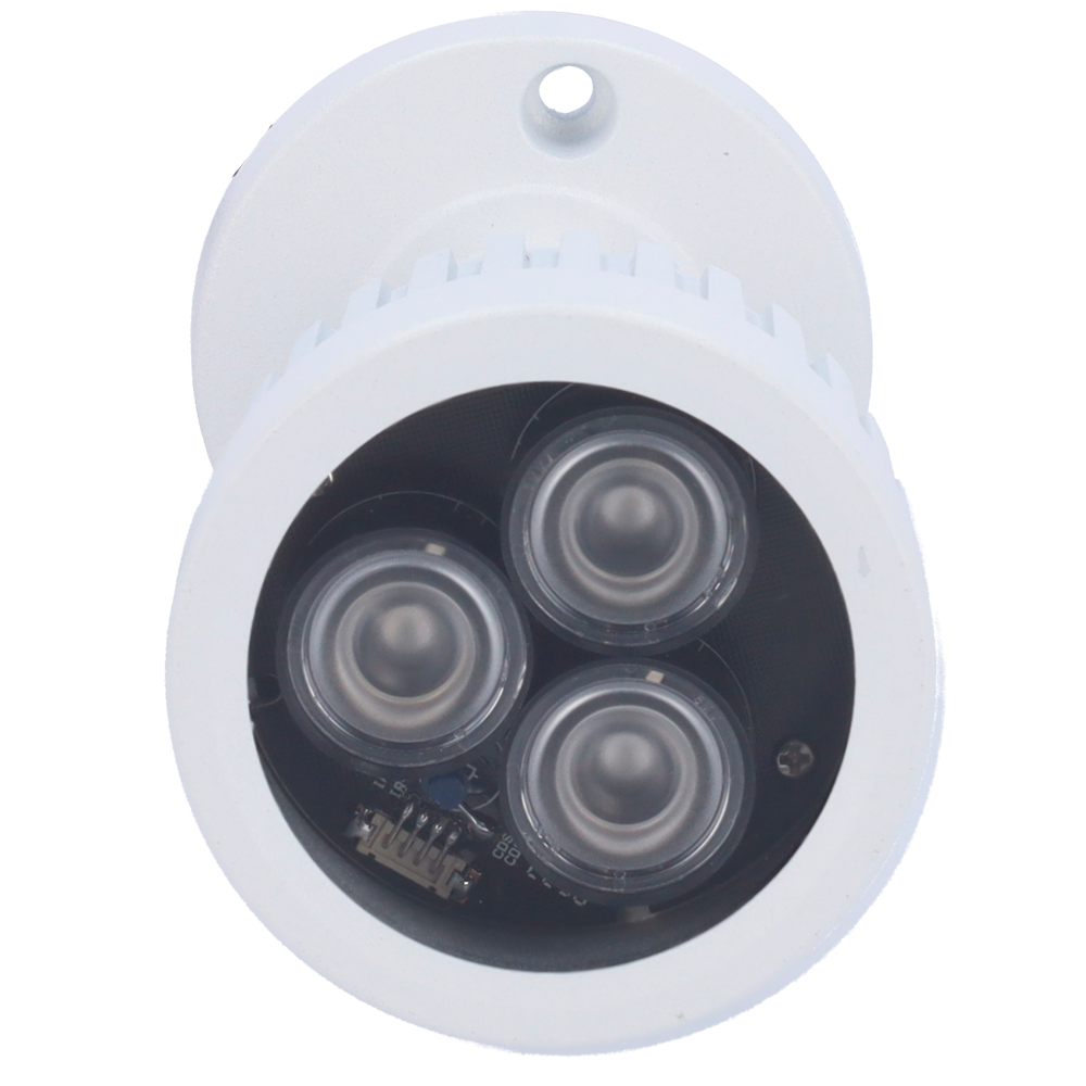 Resistente al agua, con protocolo de impermeabilidad IP65, puede usarse tanto para interior como para exterior. Dispone de una fotocélula para la activación automática de la luz infrarroja cuando las condiciones de iluminación caen por debajo de un determinado umbral. Por ello, sus 3 LED infrarrojos se activan automáticamente, proporcionando iluminación infrarroja para su visualización a través de cámaras de videovigilancia. Ángulo de apertura de 60º.