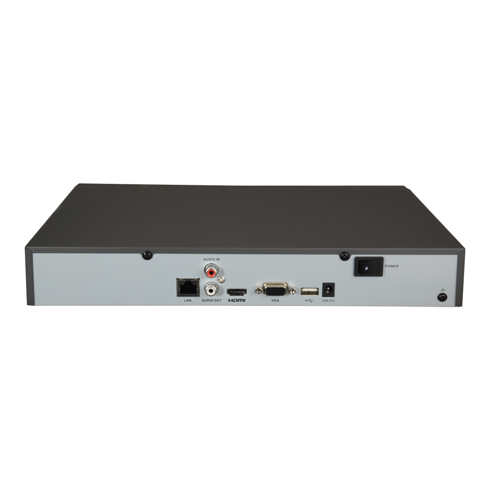 NVR para cámaras IP - Vídeo de 4 CH / Compresión H.265+ - Resolución máxima 8.0 Mp - Ancho de banda 40 Mbps - Salida HDMI 4K y VGA - Permite 1 disco duro