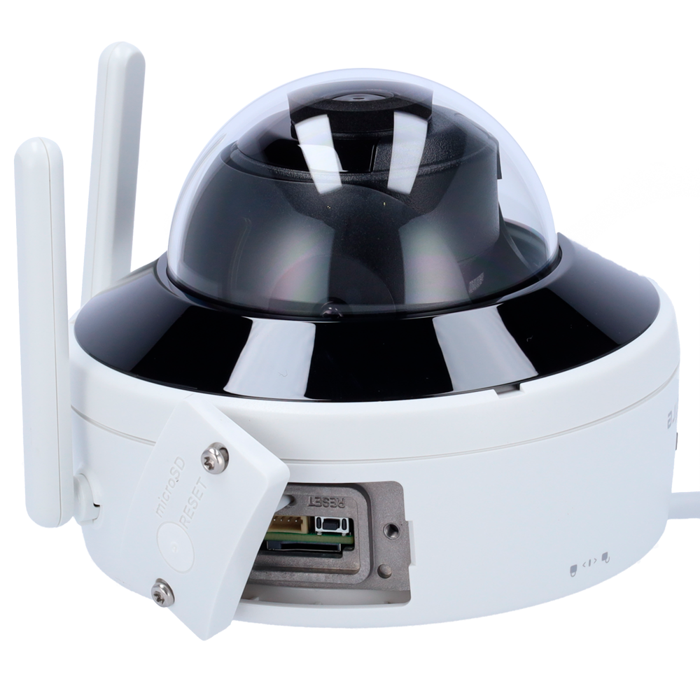 Cámara Domo IP de 4 Megapíxeles - CMOS de escaneo progresivo 1/2.7" - WIFI con conexión Hotspot - Compresión H.265+ / H.265 - Lente de 2.8 mm - Micrófono incorporado | WDR - Grabación en tarjeta Micro SD