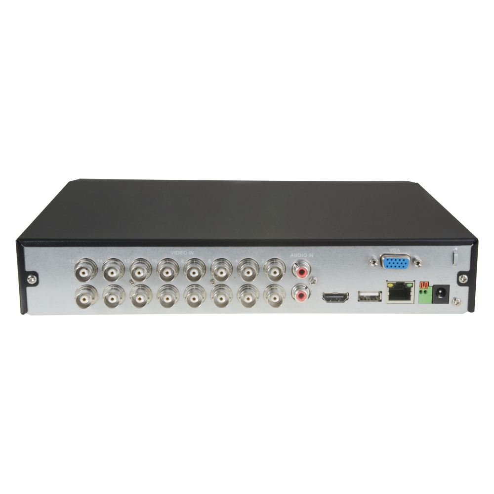 - 16 CH vídeo HDTVI/HDCVI/AHD/CVBS / 16+2 IP / 1 CH audio bidireccional RCA