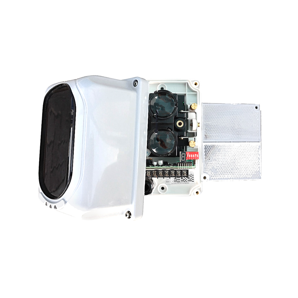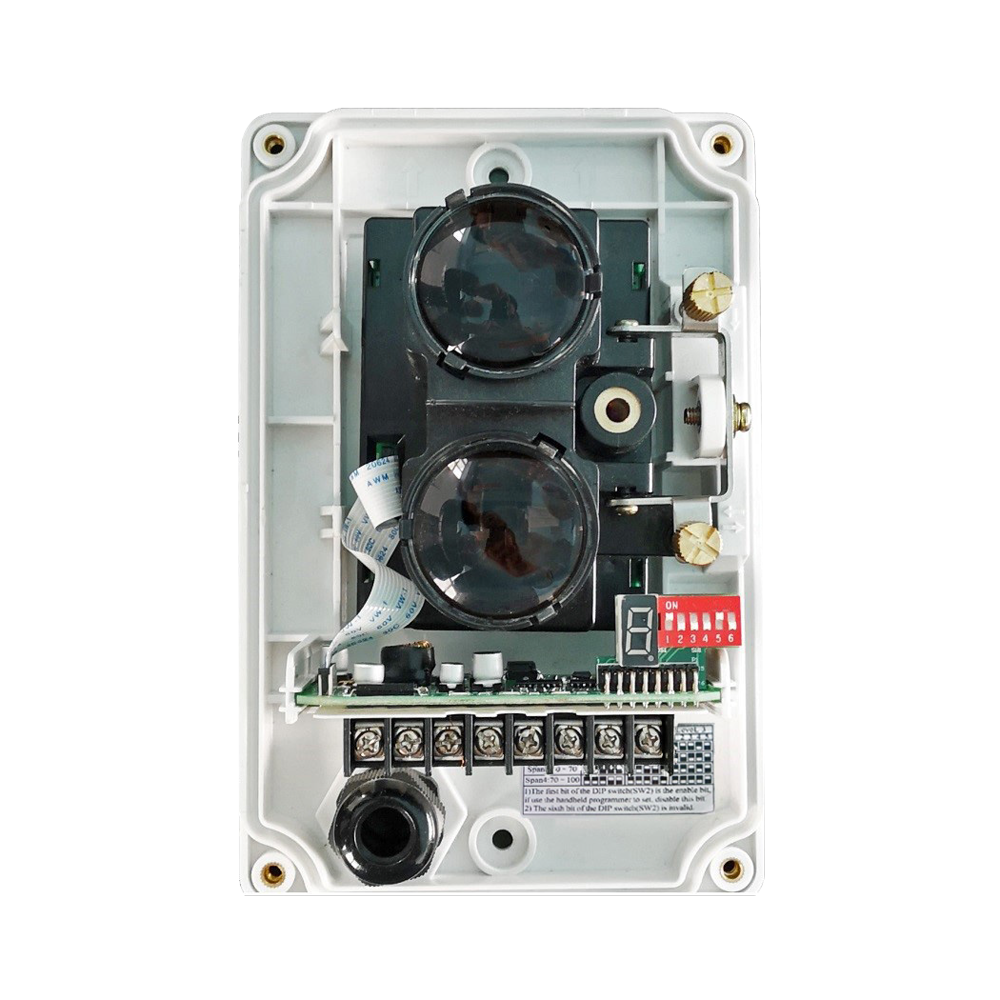 Inoltre, integra un puntatore laser e un display digitale che facilita l'allineamento preciso dello specchio e del rilevatore e consente di regolare l'intensità della luce tra i due, facilitando così l'allineamento. Il dispositivo offre quattro intervalli operativi regolabili (8-20m, 20-40m, e 40-70m e tre livelli di sensibilità 70-100m) (2.6dB, e 3.8dB.