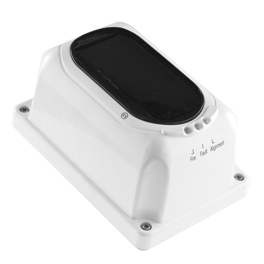 La barriera IR antincendio FIREBEAM è una barriera convenzionale per la rilevazione degli incendi. Funziona grazie al principio dell'oscuramento del raggio infrarosso riflesso, che fa scattare l'allarme quando il raggio è oscurato dal fumo.