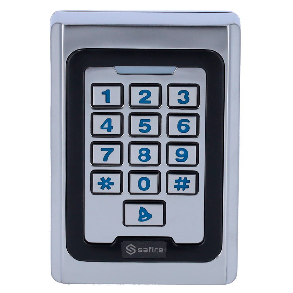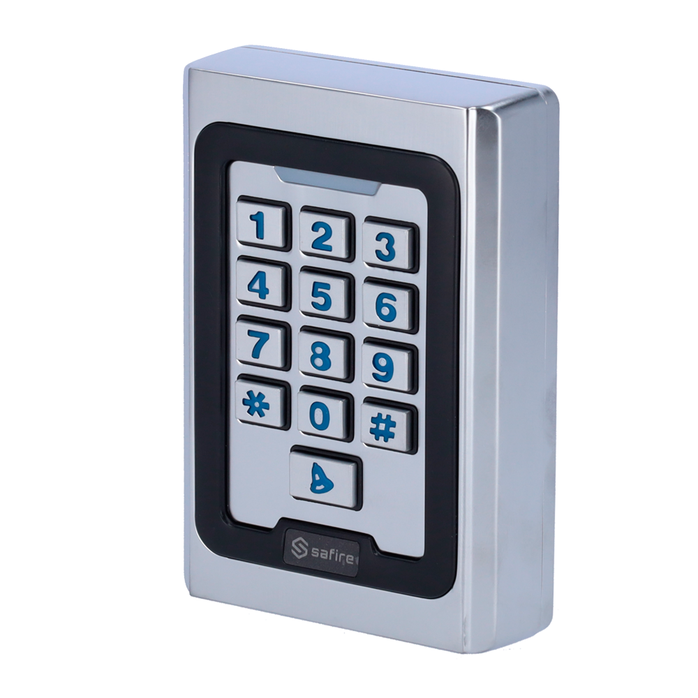 Questo dispositivo consente l'identificazione tramite schede o portachiavi con tecnologia MF a 13.56 MHz, nonché una tastiera per l'inserimento di codici numerici.