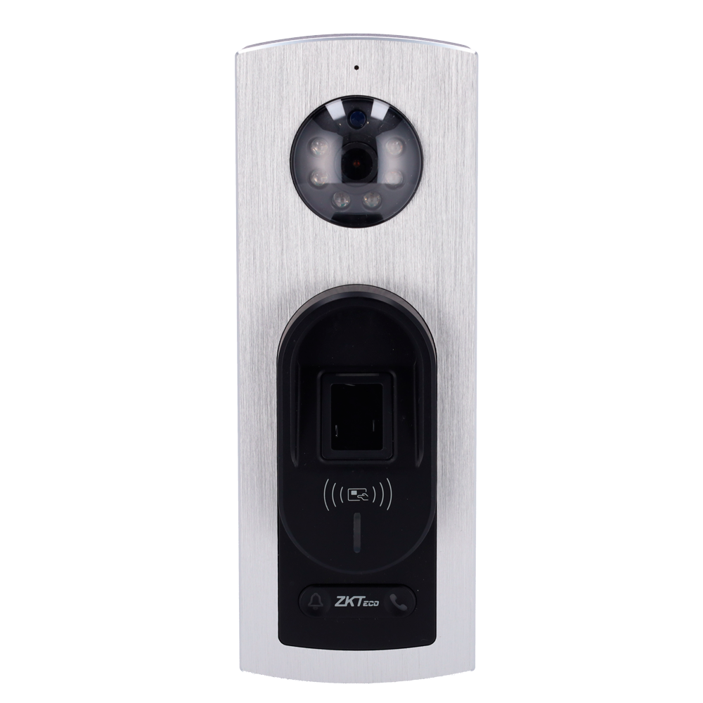 Controllo accessi con videocitofono - Biometrico e tessera EM - 10.000 impronte | 200.000 registri - TCP/IP, RS485, Wiegand e relè - Adatto per esterni IP65 - Compatibile con i software ZKTeco | App ZSmart