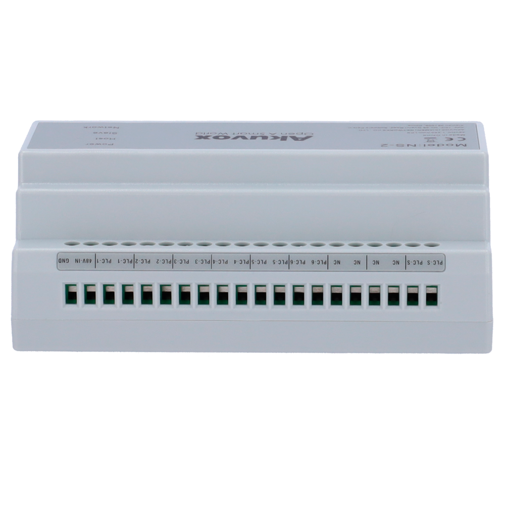 Convertitore da 2-hilos a IP - 6 gruppi di 2-hilos - TCP/IP con RJ45 - Alimenta dispositivi a 2-hilos - Collegamento in cascata di convertitori - Montaggio su guida DIN