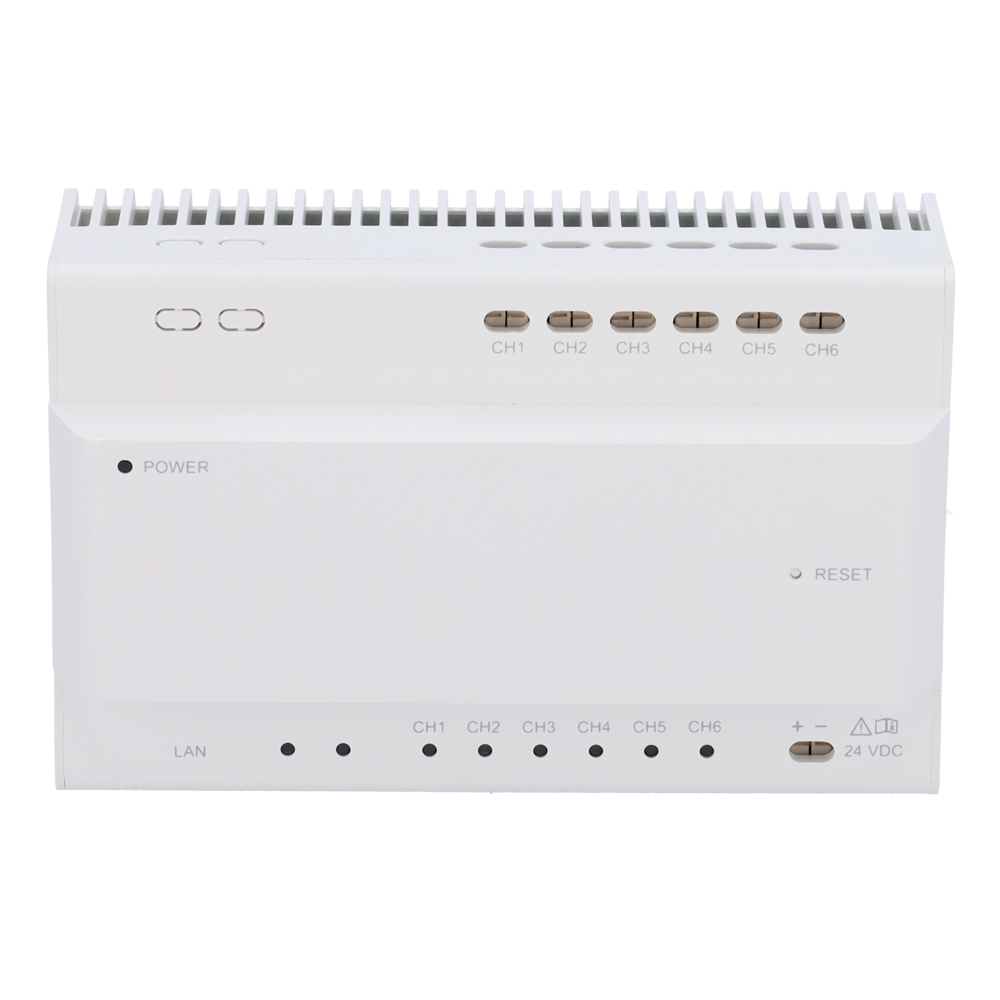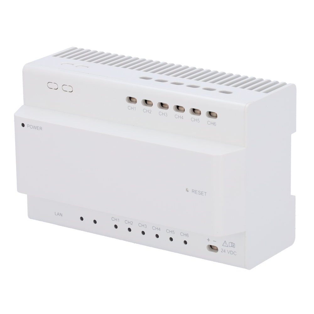 Convertitore per edifici - 2 fili a IP - 6 gruppi di 2 fili - TCP/IP con RJ45 - Collega con SF-VIMOD-HUB-M2 - Montaggio in superficie o traccia