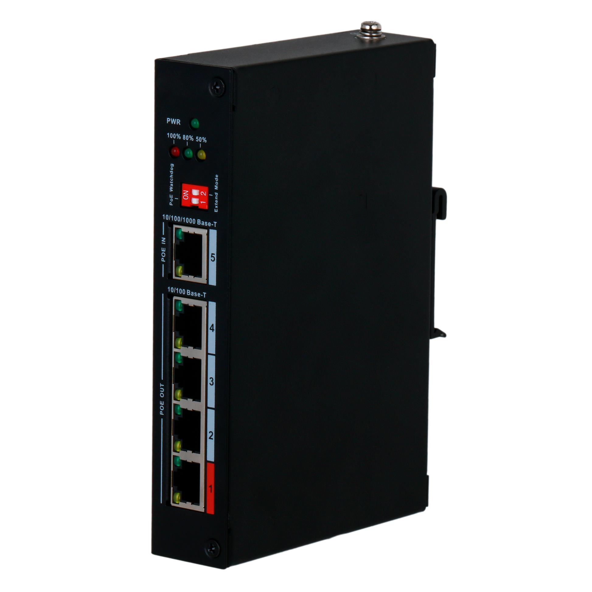 Dahua - Estensore PoE - Permette di ampliare la distanza di alimentazione POE - Velocità 4x 10/100Mbps + 1x 10/100/1000Mbps - 4 Porte PoE Out FE + 1 Porta PoE In GE - 3x Porte PoE+ 802.3af/at + 1 Porta Hi-PoE