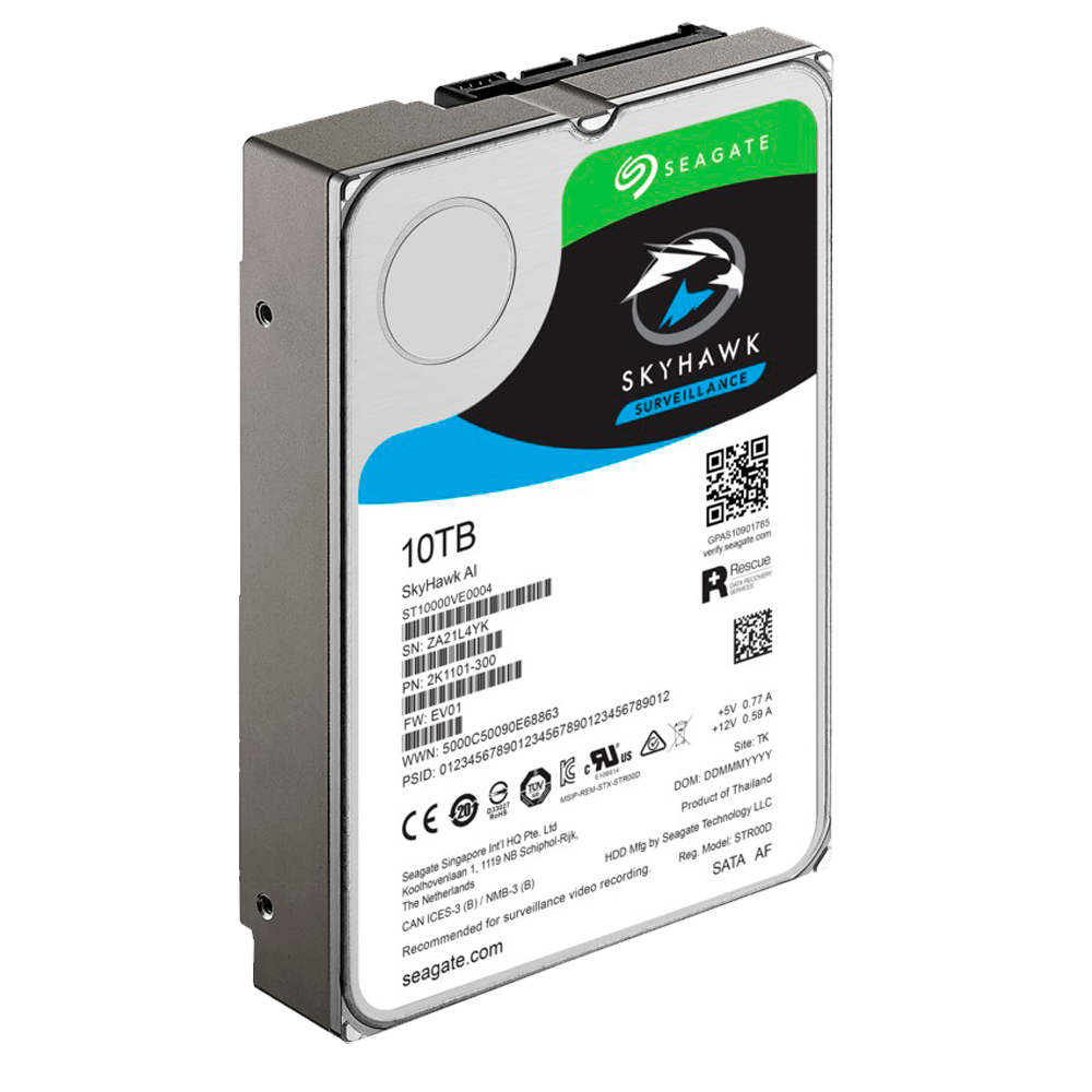 Disco duro Seagate Skyhawk - Capacità 10 TB - Interfaccia SATA 6 GB/s - Fino a 32 trasmissioni di intelligenza artificiale - Modello ST10000VE0008 - Speciale per videoregistratore di rete (NVR)