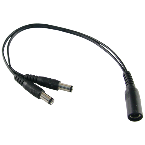 Dispone di un ingresso maschio di alimentazione standard, e 2 uscite femmina di alimentazione standard. Può così alimentare fino a 2 telecamere (o altri dispositivi) collegati alla sua uscita, utilizzando un solo alimentatore collegato al suo ingresso.