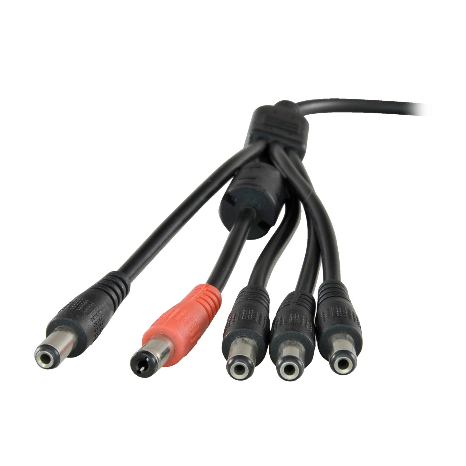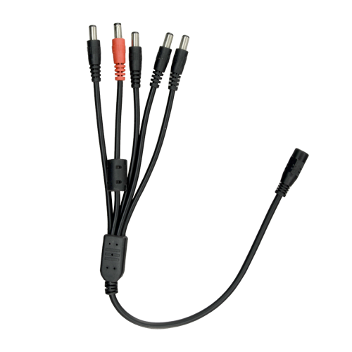 Ha un ingresso maschio di alimentazione standard e 5 uscite femmina di alimentazione standard. Può così alimentare fino a 5 telecamere (o altri dispositivi) collegati alla sua uscita, utilizzando un solo alimentatore collegato al suo ingresso.