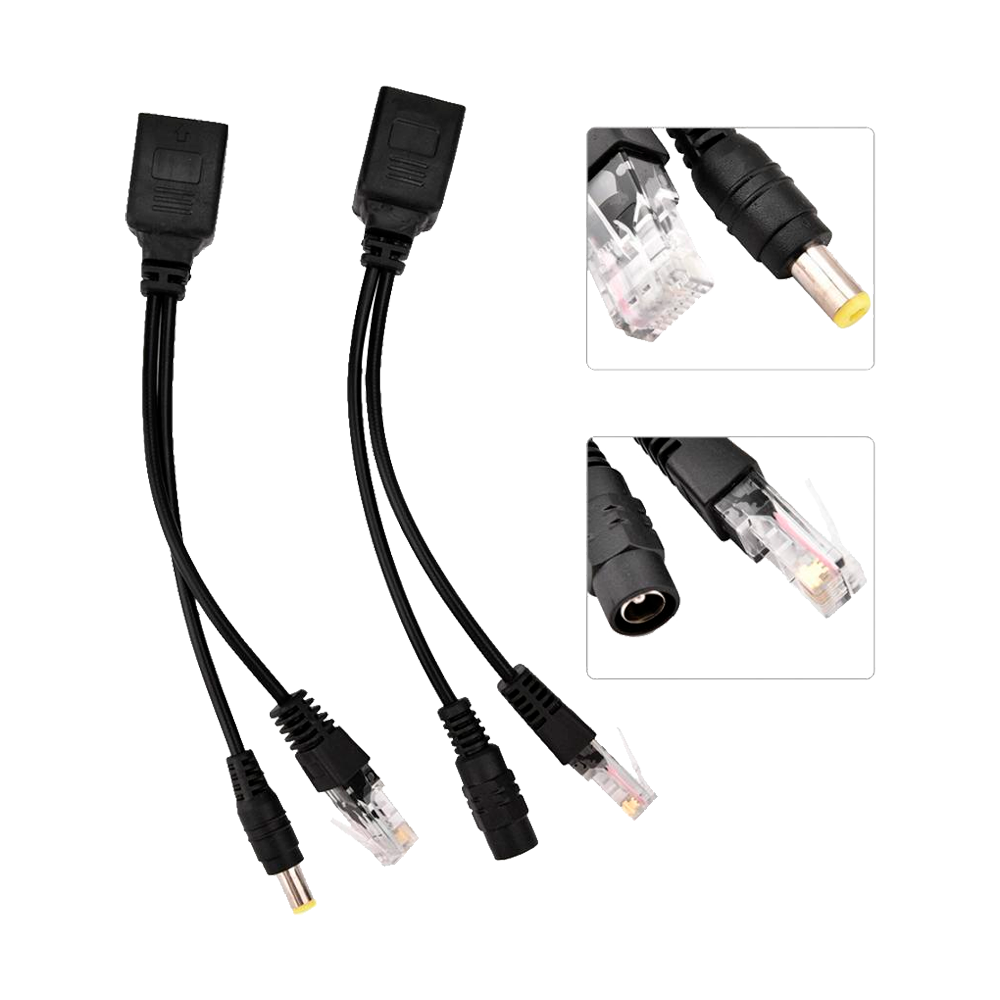 - Splitter PoE che consente di alimentare e collegare una telecamera IP a un cavo Ethernet dotato di alimentazione PoE