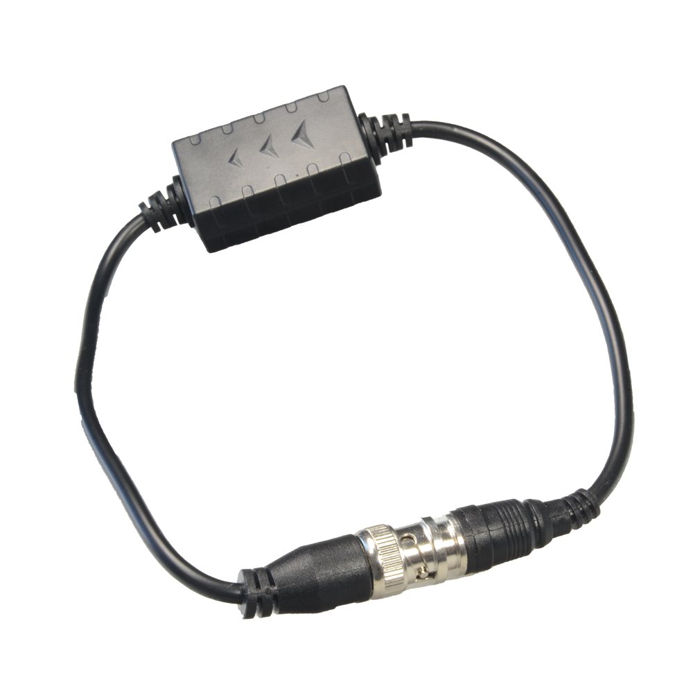 Isolatore di fonte d'alimentazione - Ottimizzato per video HDCVI - Installazione su cavo coassiale - Cavo 400 mm di lunghezza - Elemento passivo - Risposta in frequenza 0-65MHz