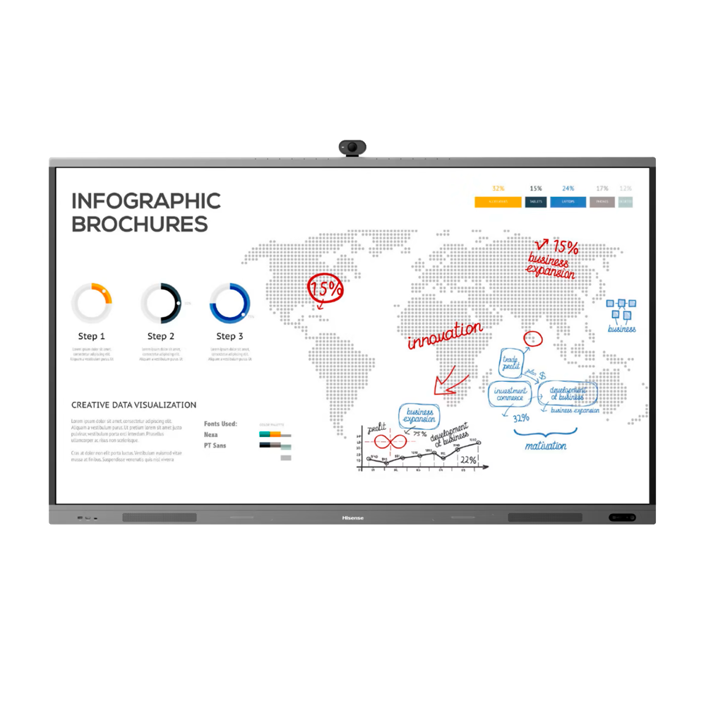 Monitor interattivo HISENSE 65" 4K - Trasmissione wireless - Risoluzione 3840x2160 - Ingressi HDMI, DP, OPS, LAN, USB, Type-C - Angolo di visione di 178° - Microfono e Altoparlanti integrati