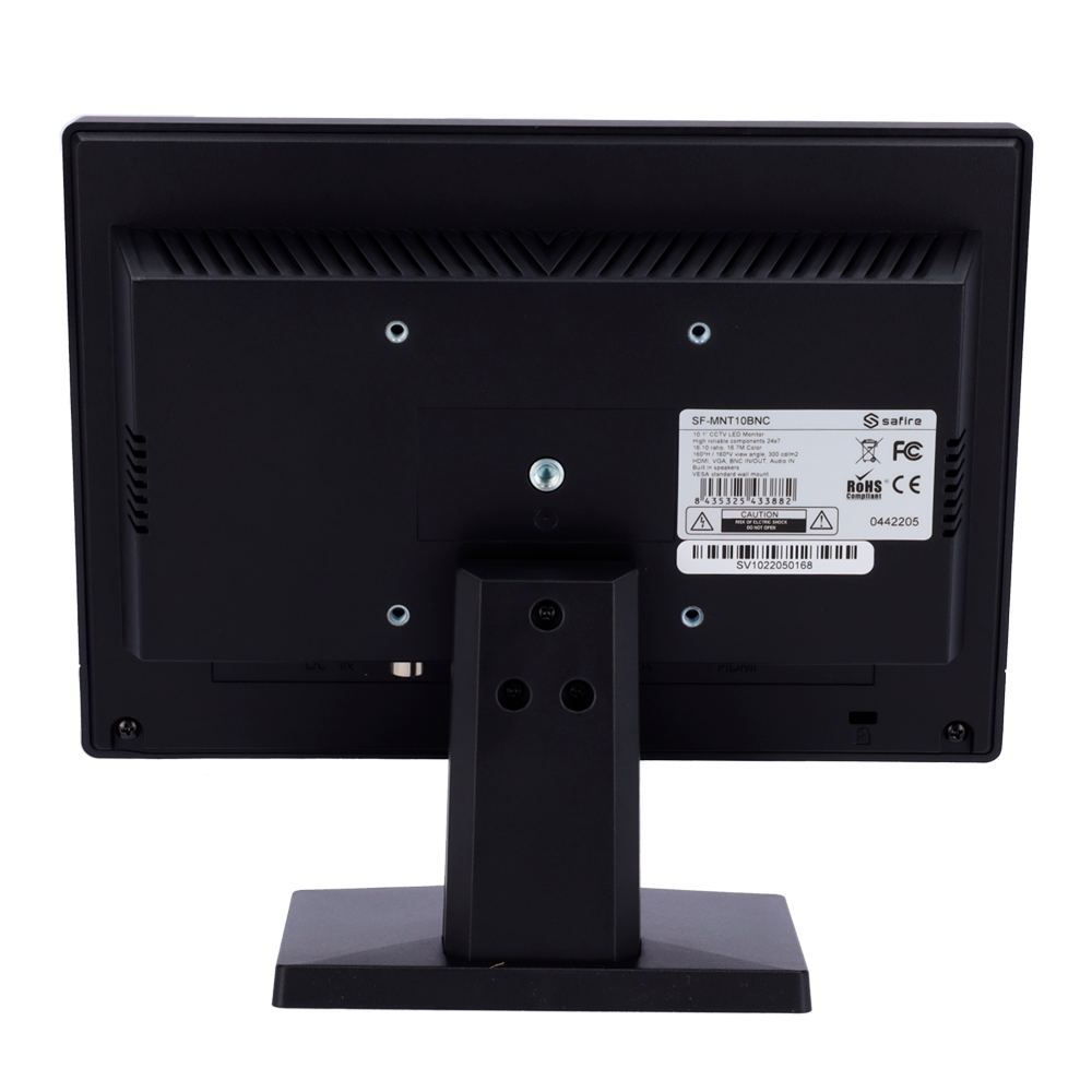 Monitor SAFIRE LED 10" - Progettato per la videosorveglianza - Formato 16:10 - VGA, HDMI, BNC loop e audio - Risoluzione 1280x800 - altoparlanti integrati