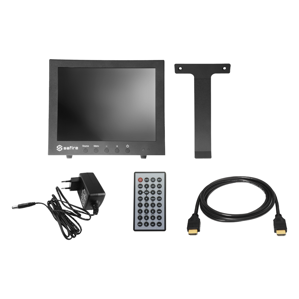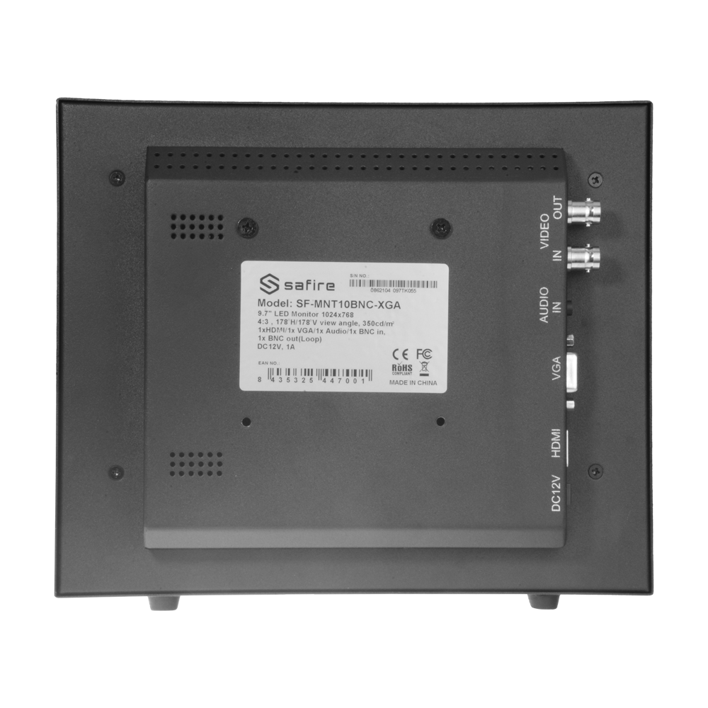 Monitor SAFIRE LED 10" - Progettato per la videosorveglianza - Formato 4:3 - VGA, HDMI, BNC loop e audio - Risoluzione 1024x768 - altoparlanti integrati