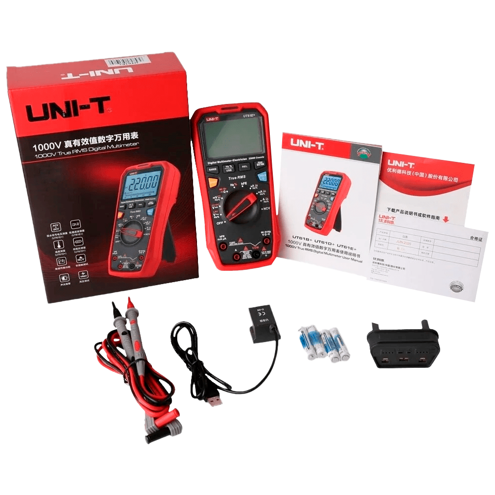 Multímetro digital CAT III - Pantalla LED de hasta 6000 cuentas - Medición en DC y AC hasta 1000V y 10A - Conexión con PC - Alta precisión en AC con función True RMS - Mide resistencia y capacitancia
