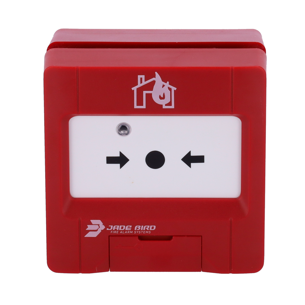 Pulsador convencional Jade Bird - Rearmable - Indicador luminoso y visual de activación - Contacto seco auxiliar - Resistencia de alarma seleccionable 680/470 Ω - Certificado EN 54-11