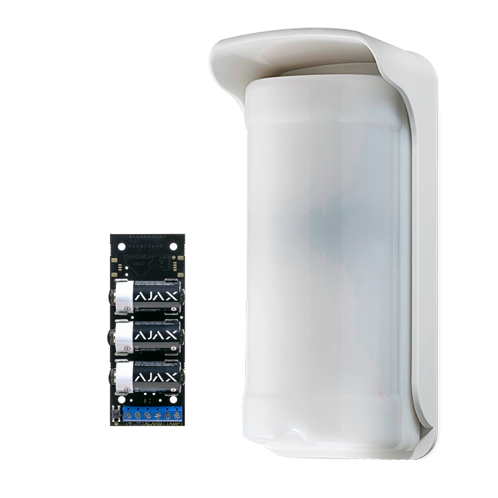 Rilevatore da esterno Duevi a basso consumo - Integrato con Ajax Transmitter - Doppio PIR su ciascun lato e doppio PIR frontale - Copertura totale 180º / Antimasking - Alimentazione fornita dal Transmitter - Uso esterno IP54 / Antivandalo IK10