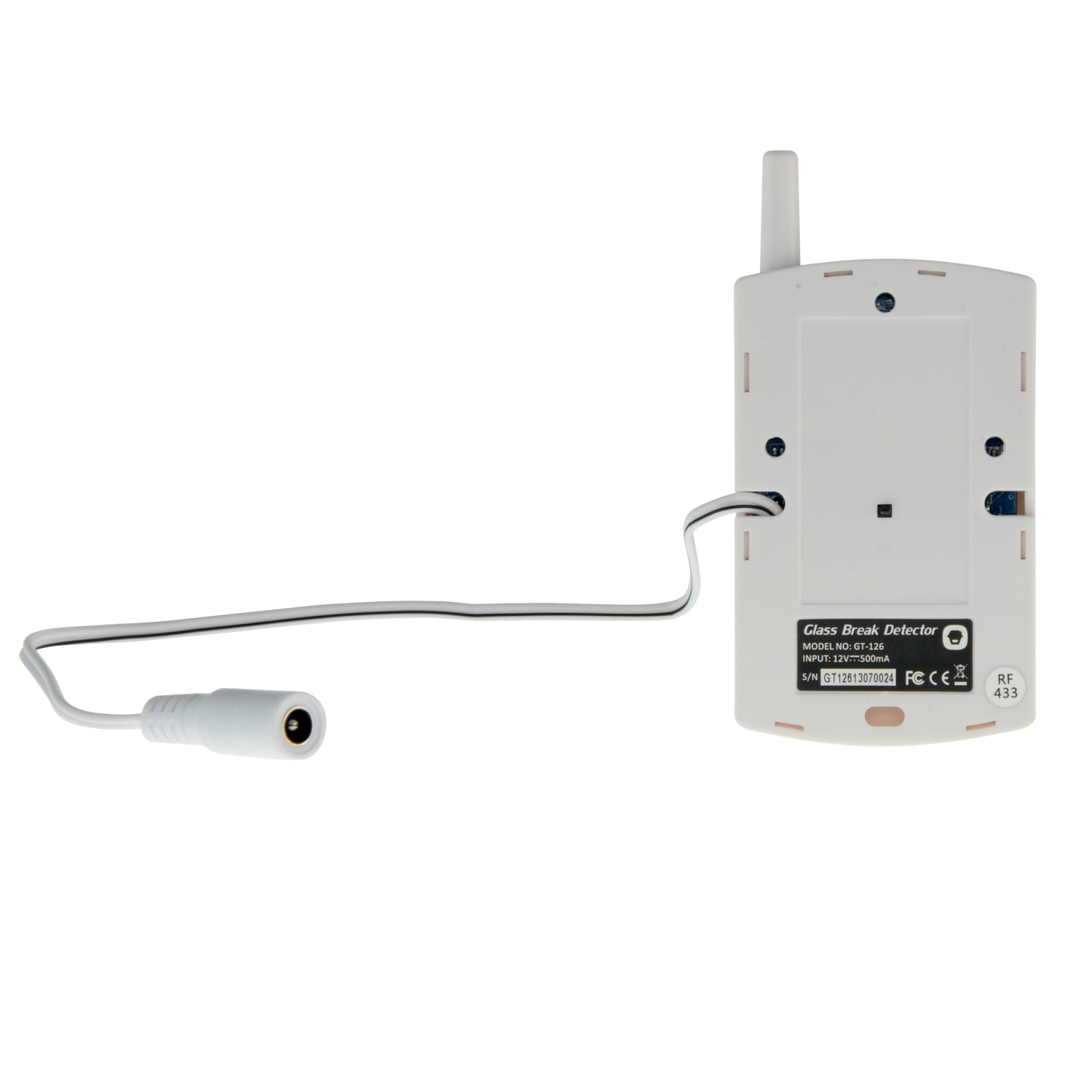 Rilevatore rottura cristalli - Wireless - Antenna esterna - Indicatore LED batteria scarica - Distanza di rilevamento 7 m - Include trasformatore 12 V -