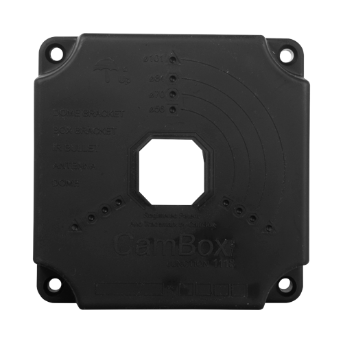 Scatola di giunzione per telecamere dome e bullet - Per esterni - Installazione a tetto o parete - Sigillo completo con coperchi CamBox - Colore nero - Fabbricato in plastica