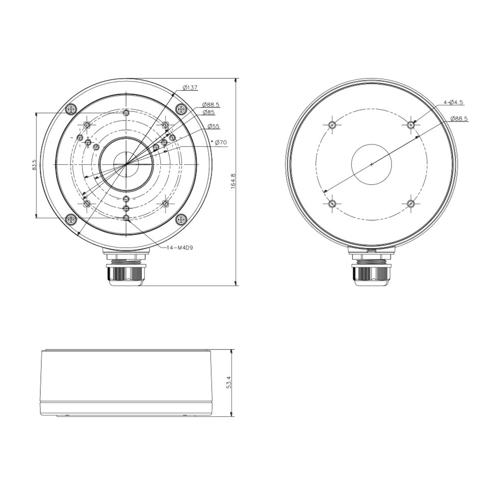 Scatola di giunzione - Per telecamere dome o bullet - Per esterni - Installazione a tetto o parete - Colore nero - Passacavo
