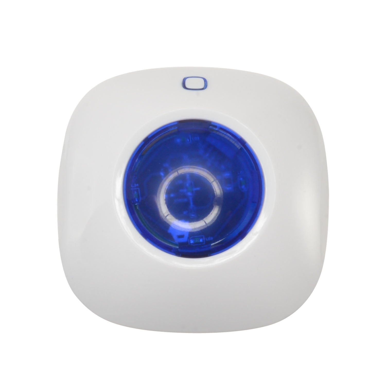 Sirena da90 dB per interni, con lampeggiante. Si comunica in modalità wireless con il pannello di allarme, e così quando viene rilevata un'intrusione o un evento, oltre a suonare la sirena interna del pannello, suonerà anche il suono e si metterà a lampeggiare.