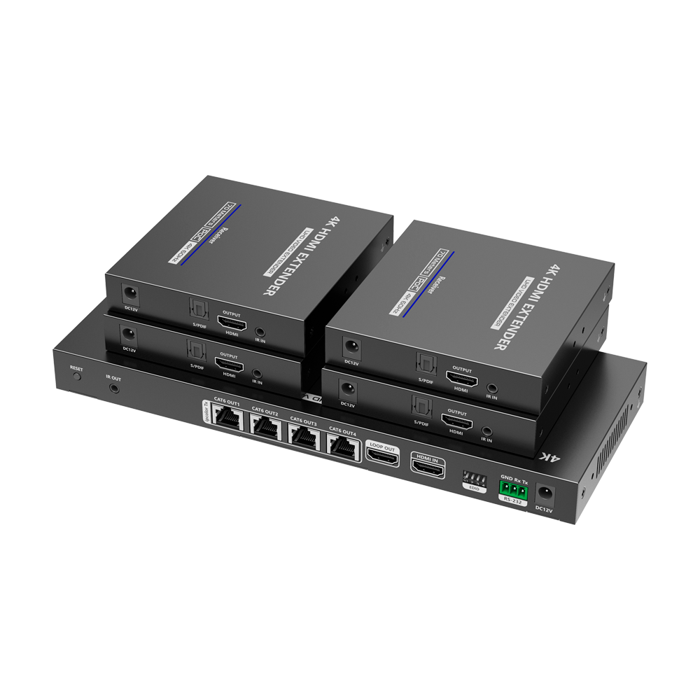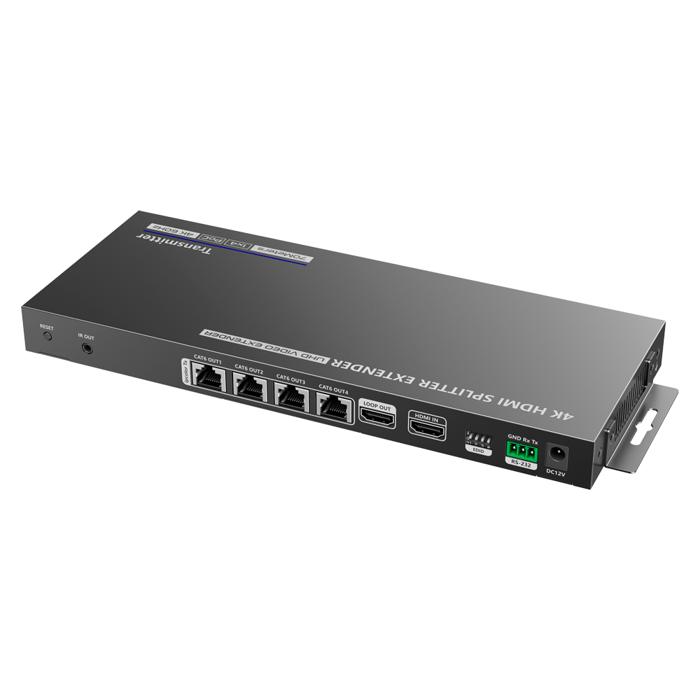 Splitter-Extensor HDMI 1x4 - 1 transmisor / 4 receptores - Resolución hasta 4K@30Hz - Alcance hasta 70m - Sobre cable UTP CAT6/6A/7 - Control RS232