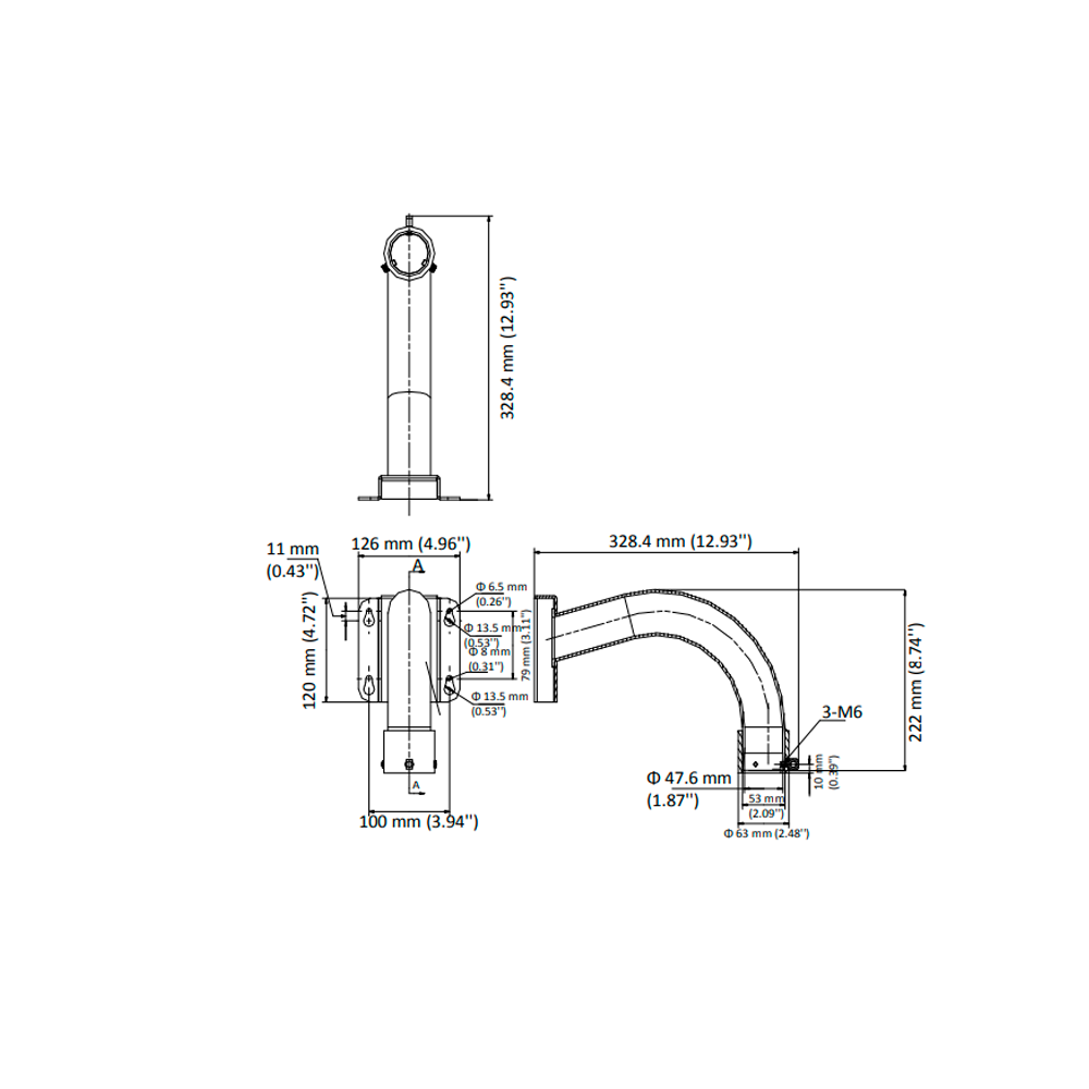 - 222 (Al) x 126 (An) x 328 (Fo) mm