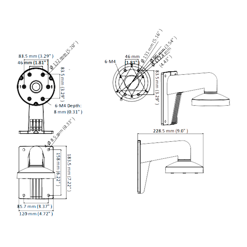 - 183.5 (I) x 120 (H) x 132 (φ) mm