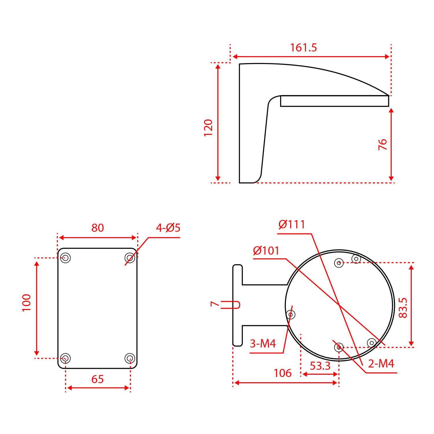 Staffa a parete - Per telecamere dome - 120 (Al) x 111 (An) x 161 (Fo) - Resistenza al carico 1 Kg - ABS+PC / Colore bianco - Compatibile con Hiwatch Hikvision