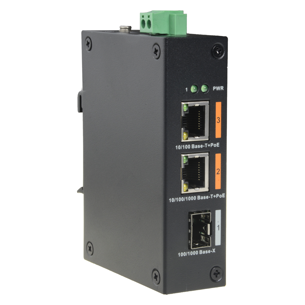 Switch HiPoE X-Security - 2 porte PoE + 1 Porta Uplink (SFP) - Velocità 10/100/1000 Mbps - Consumo massimo 60W [%VAR%] - 2 Porte HiPoE - Installazione su guida DIN