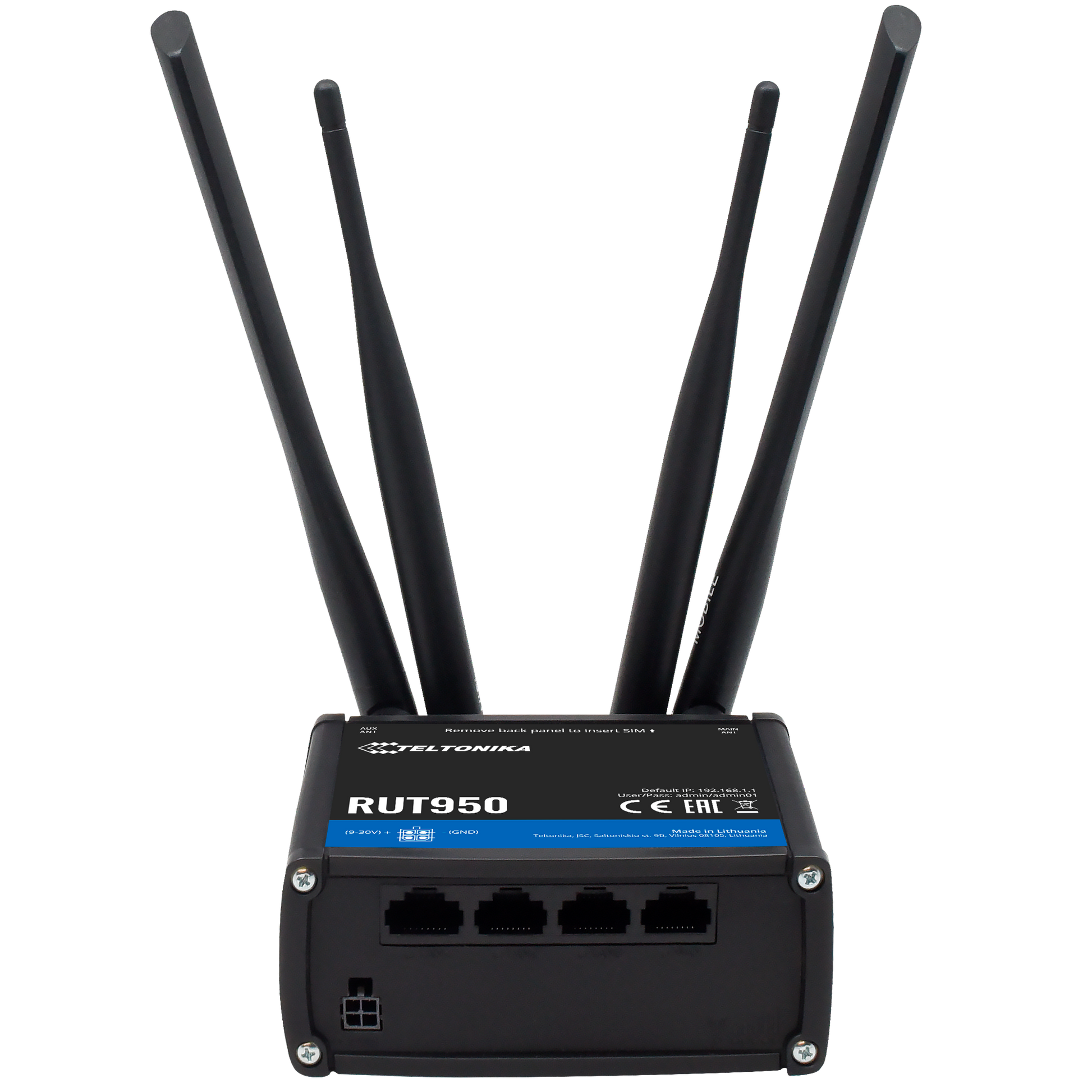 Teltonika Router 4G Industriale - 4 porte Ethernet RJ45 Fast Ethernet - Dual SIM 4G (LTE) Cat 4 fino a 150Mbps - 2x Ingressi + 2xSalidas Digitali - Wi-Fi 802.11b/g/n 2.4GHz - Alloggiamento in Alluminio