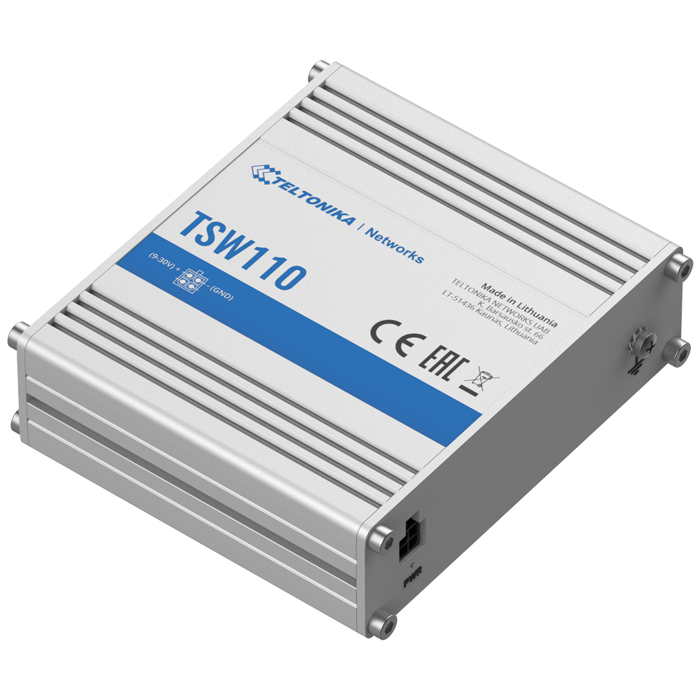 Teltonika Switch Unmanaged Industriale - 5 porte Ethernet RJ45 Gigabit - Robusto Alloggiamento in Alluminio - Plug and Play - Alimentazione DC 9 a 30V - LED di Stato