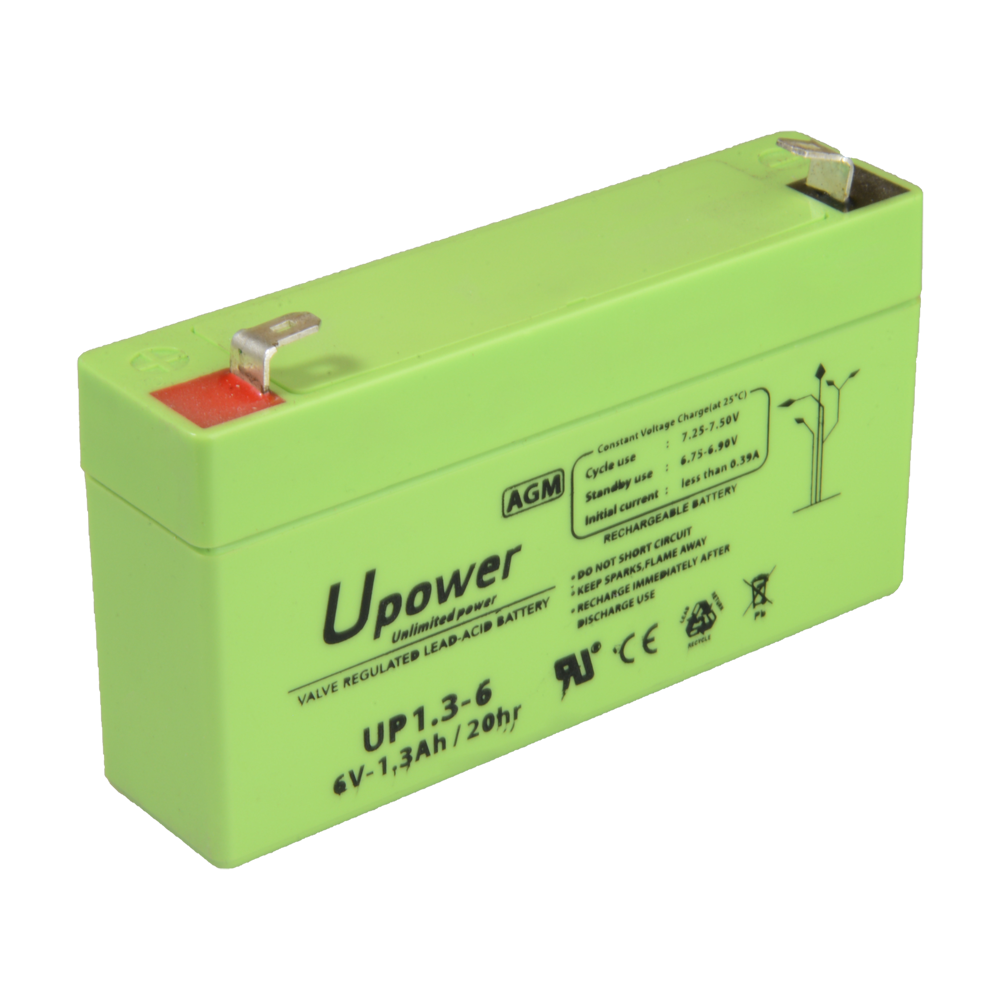 Upower - Batteria ricaricabile - Tecnologia piombo-acido AGM - Voltaggio 6 V - Capacità 1.3 Ah - 97 x 57.5x x 24/ 290g - Per backup o uso diretto