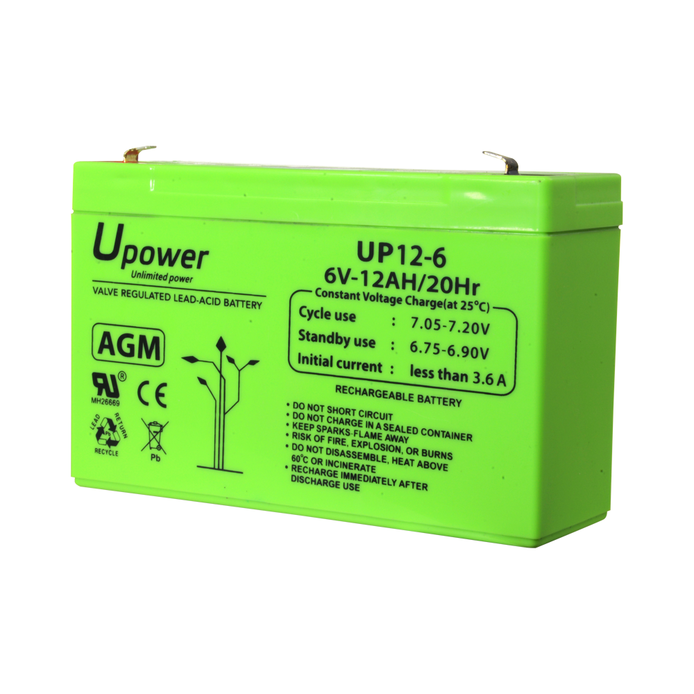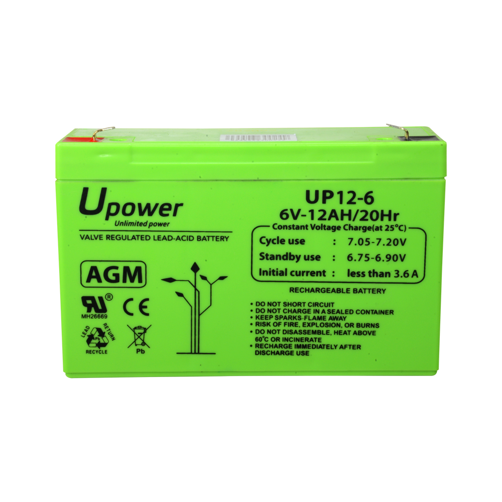Upower - Batteria ricaricabile - Tecnologia piombo-acido AGM - Voltaggio 6 V - Capacità 12.0 Ah - 100 x 151x x 51/ 1800g - Per backup o uso diretto