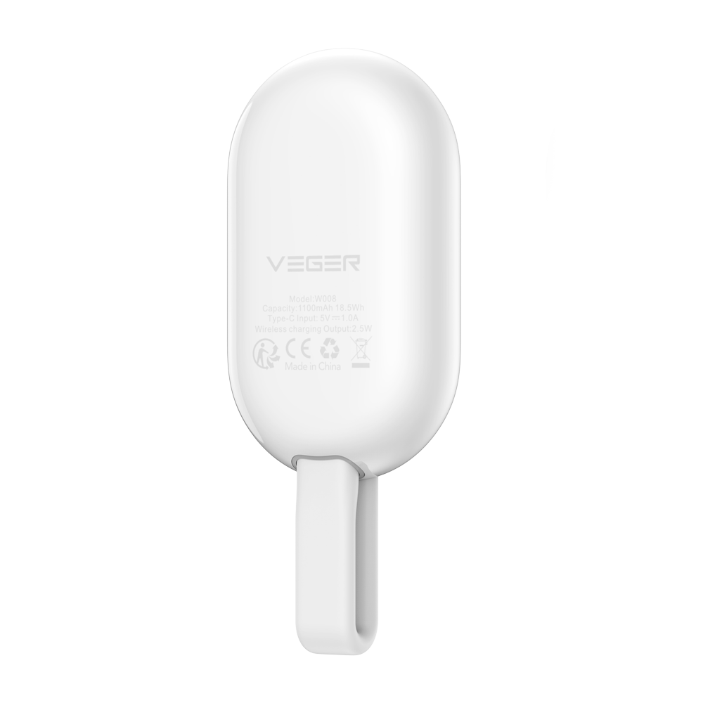 VEGER - Power bank wireless con LED di ricarica - Capacità 1200mAh - Ingresso USB-C, Uscita Wireless per AppleWatch - Carica 1 dispositivo